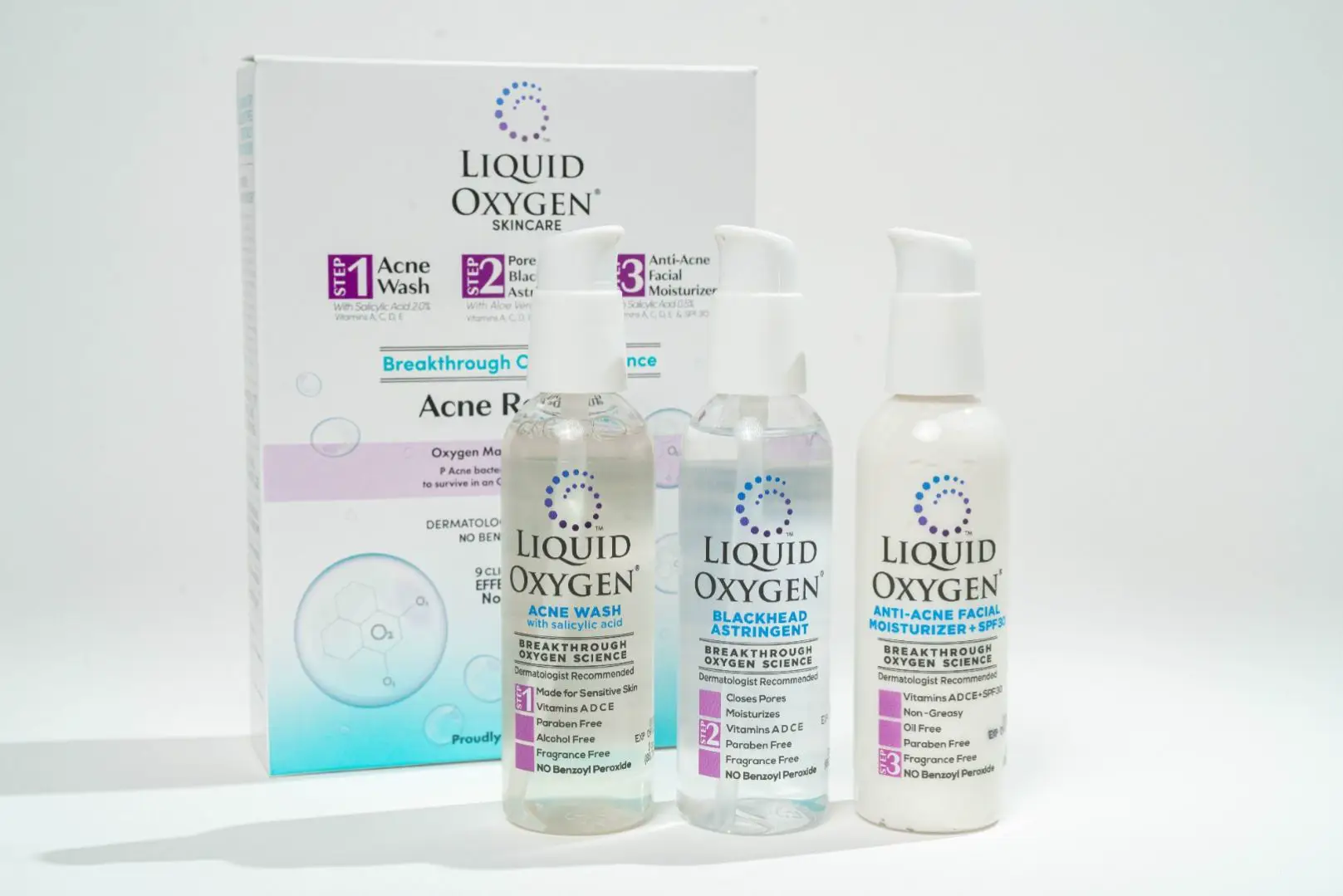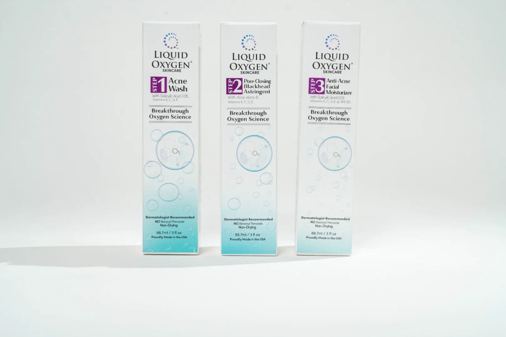 3. Liquid Oxyen's proprietary Oxygen Science kills >99.999% of acne bacteria "ON CONTACT " See Clinical Studies attached.