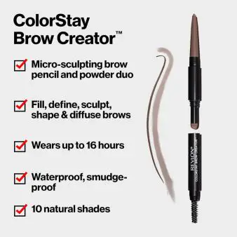 Revlon ColorStay Brow Creator helps define and shape brows with natural-looking precision. Its long-lasting formula glides on smoothly for easy filling, detailing, and everyday brow perfection.