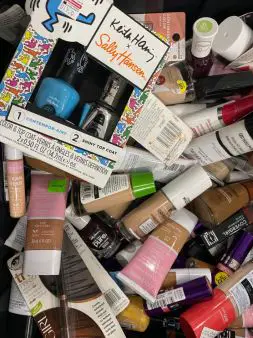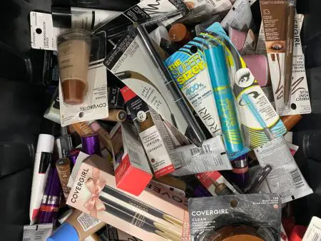 Lots are assorted and may include a mix of:Lip sticks, foundations, pencils, mascaras, eye shadows, nail polish, waterproof mascaras, items with SPF