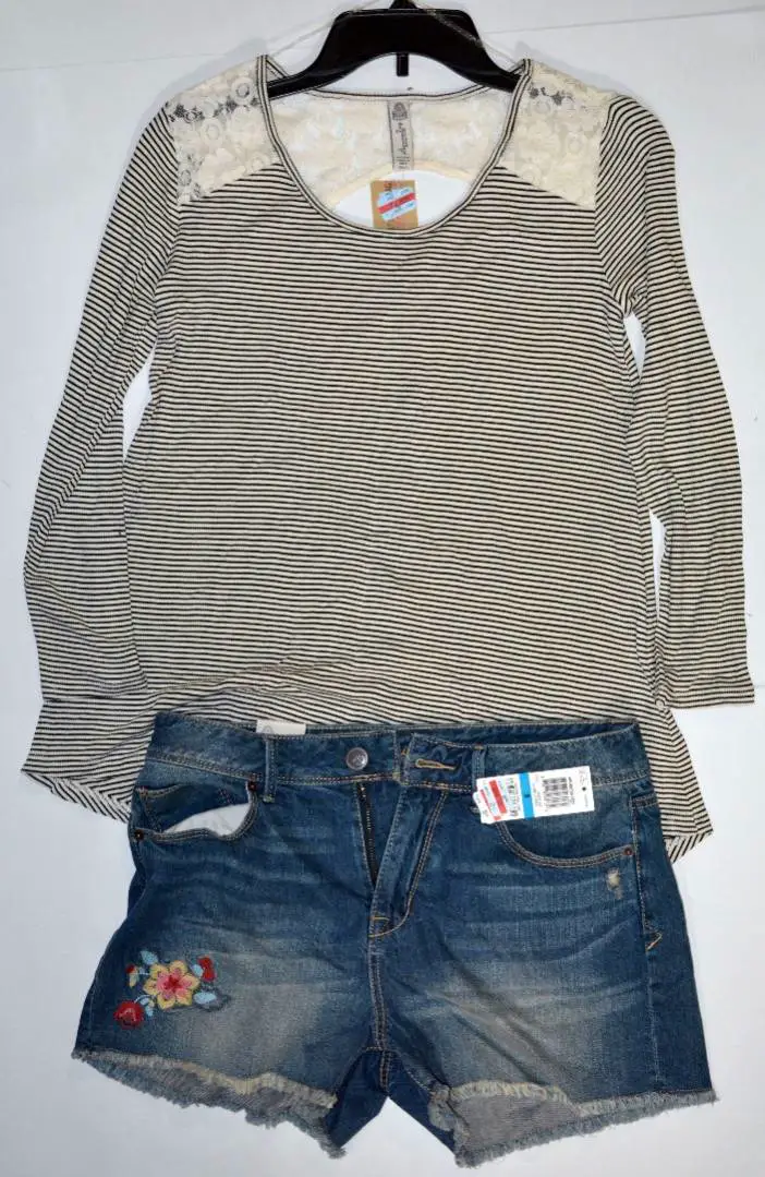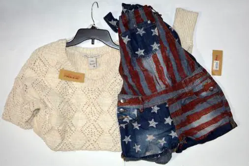 Styles typically include: Activewear, Basci Essentials, Dresses, Graphic Tees, Jackets, Vests, Jeans, Jumpsuits, Pants, Rompers, Shorts, Skirts, Sweaters, Tops & more.