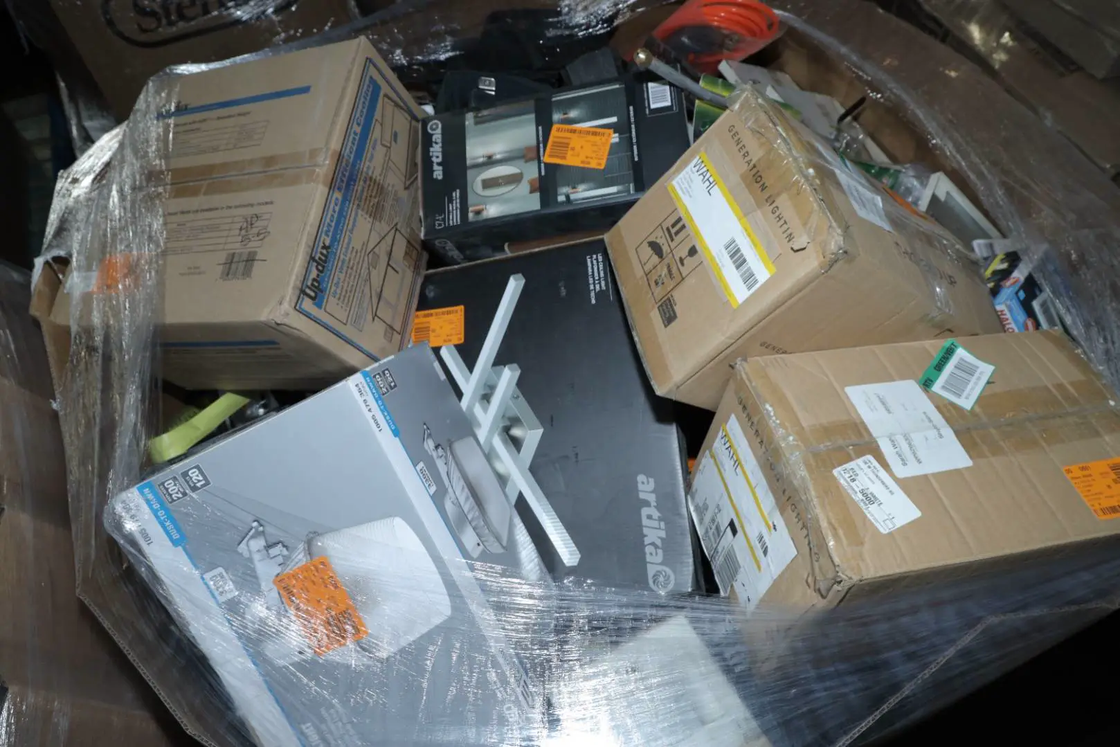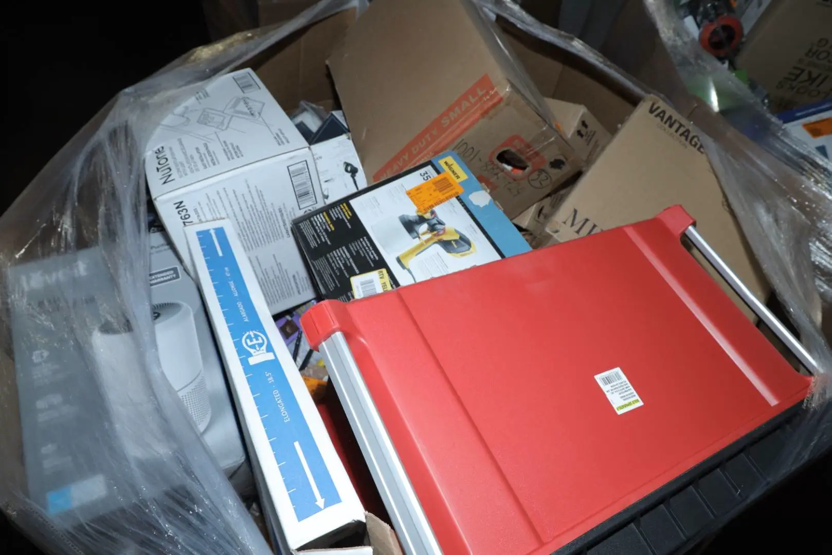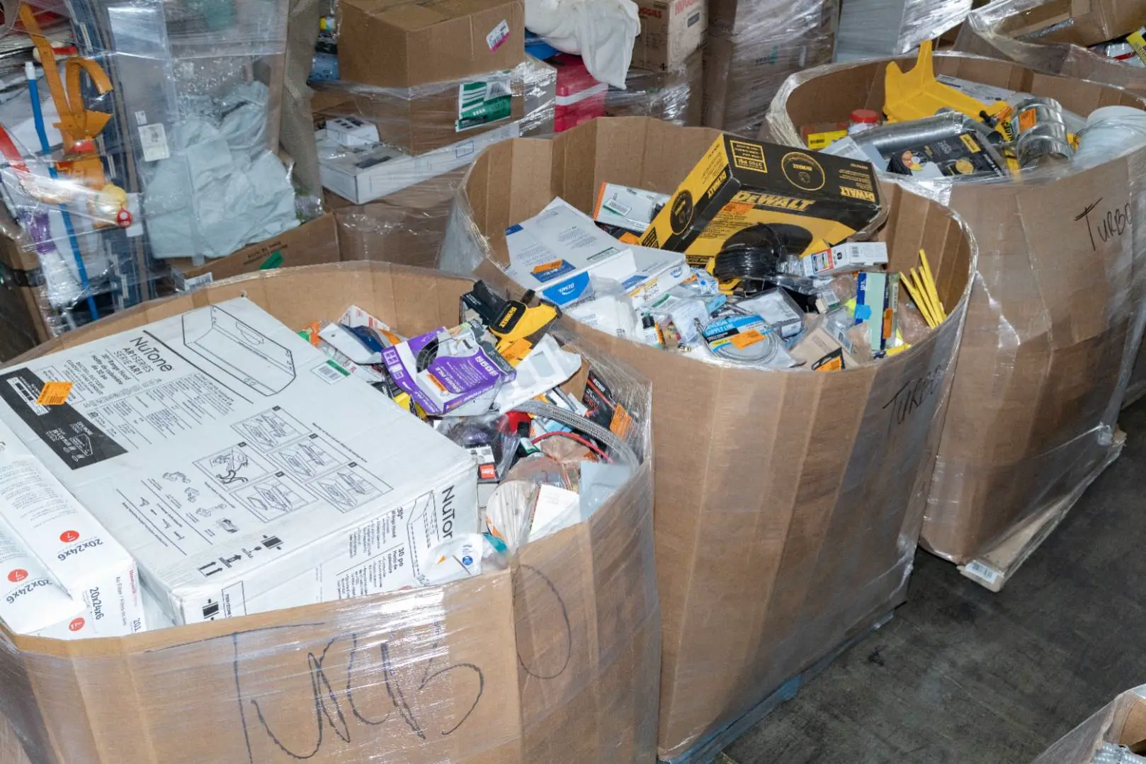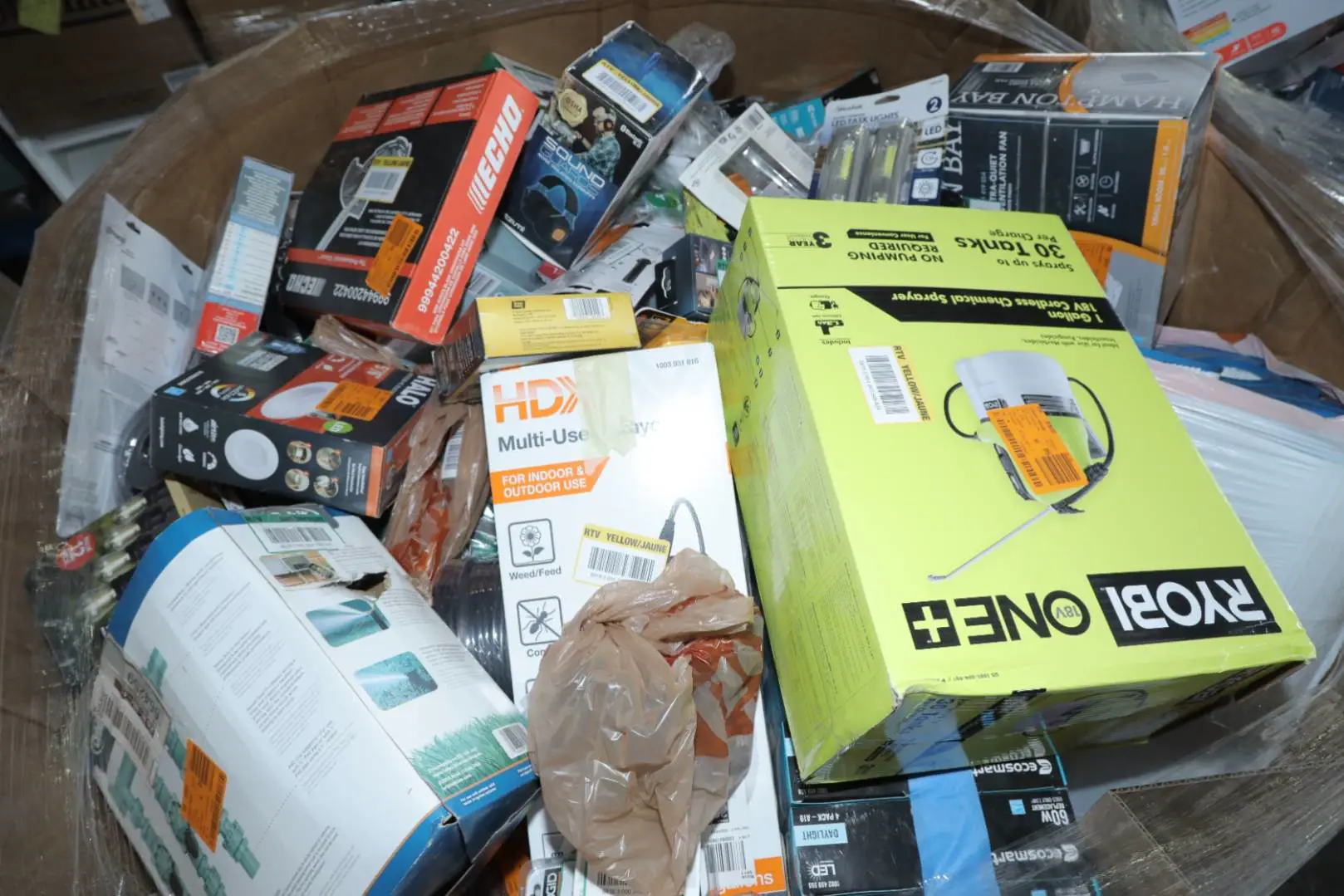 Items typically found may include but are not limited to: Shower heads, Wet/Dry Vacuum, Heater Fan, Mower, Range Hood, measuring tape, Locks, Sprayer, Welding Helmet, Hammer, Scales, Security Light, Vents, Boots, Night Light, Paint kits, Toilet paper, Ceiling Fans, Fans, Bins, Patio Furniture, Lighting, Tool Cabinets, Leaf Blowers, Flooring, Shelving, Tool Chest, Faucets, Reciprocating Saws, Hose, Storage Units, Water Filters, Air Filters, Door Handles, Fire Pits, Mail Box, and more…