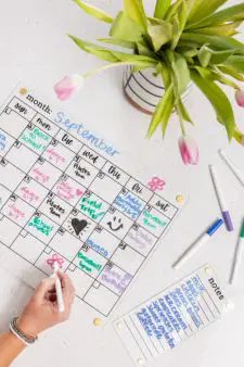 Acrylic Calendar with Notepad, includes set of 5 markers, 2 magnets, eraser, and magnetic marker holder