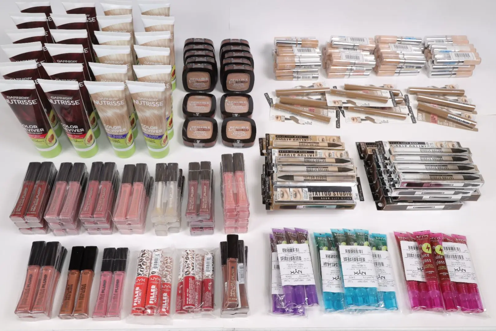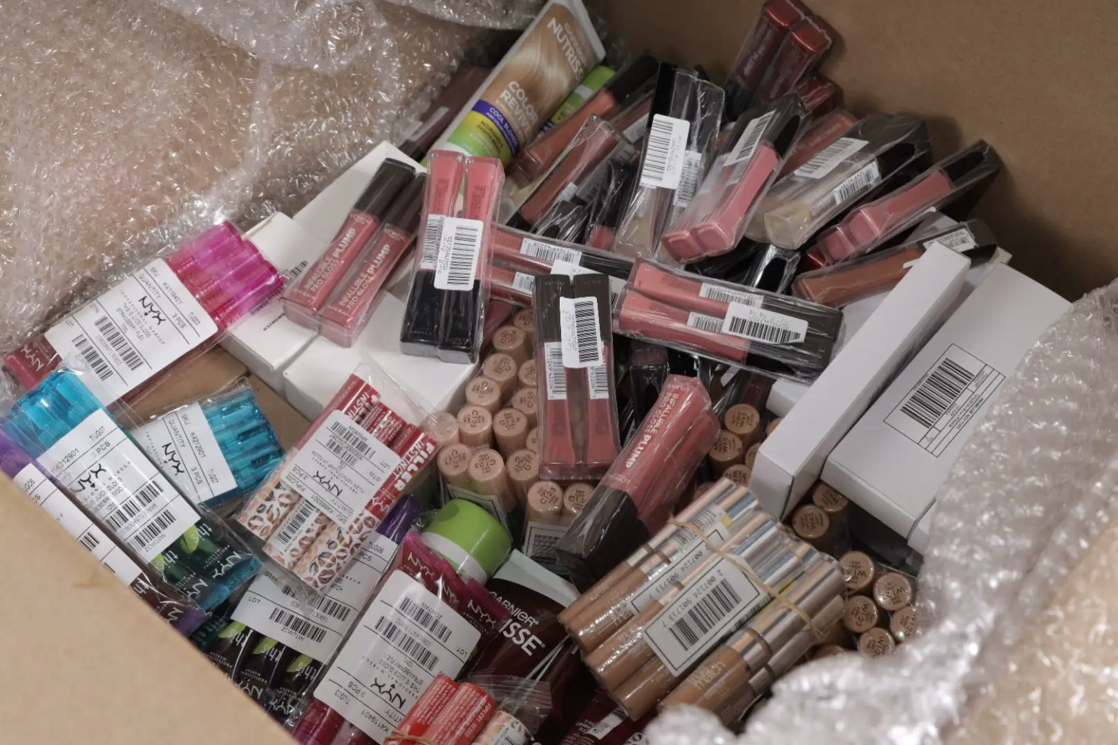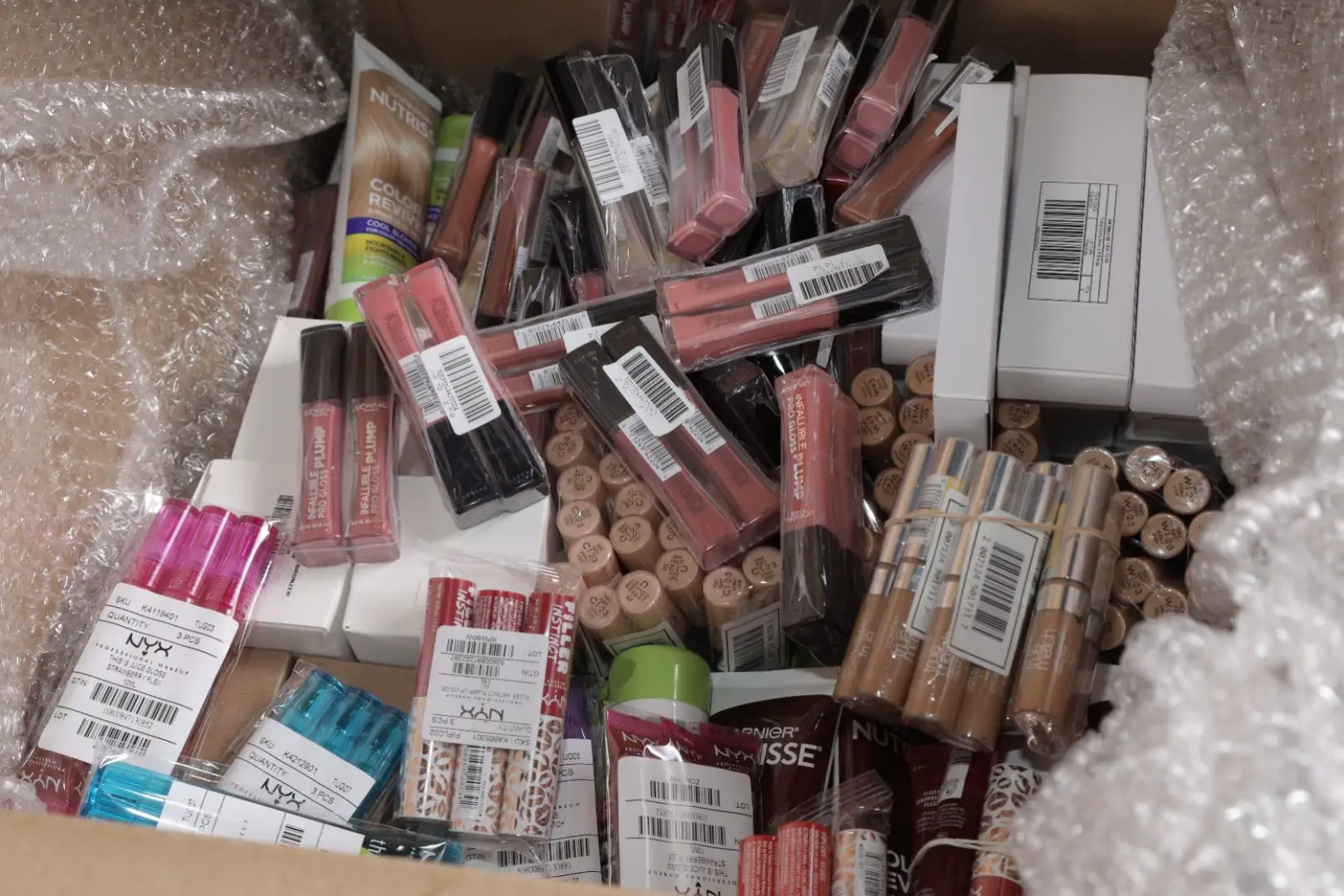 Assorted Case Packs of 250 units of New Overstock L'Oréal, NYX & Maybelline Cosmetics. Partially Manifested