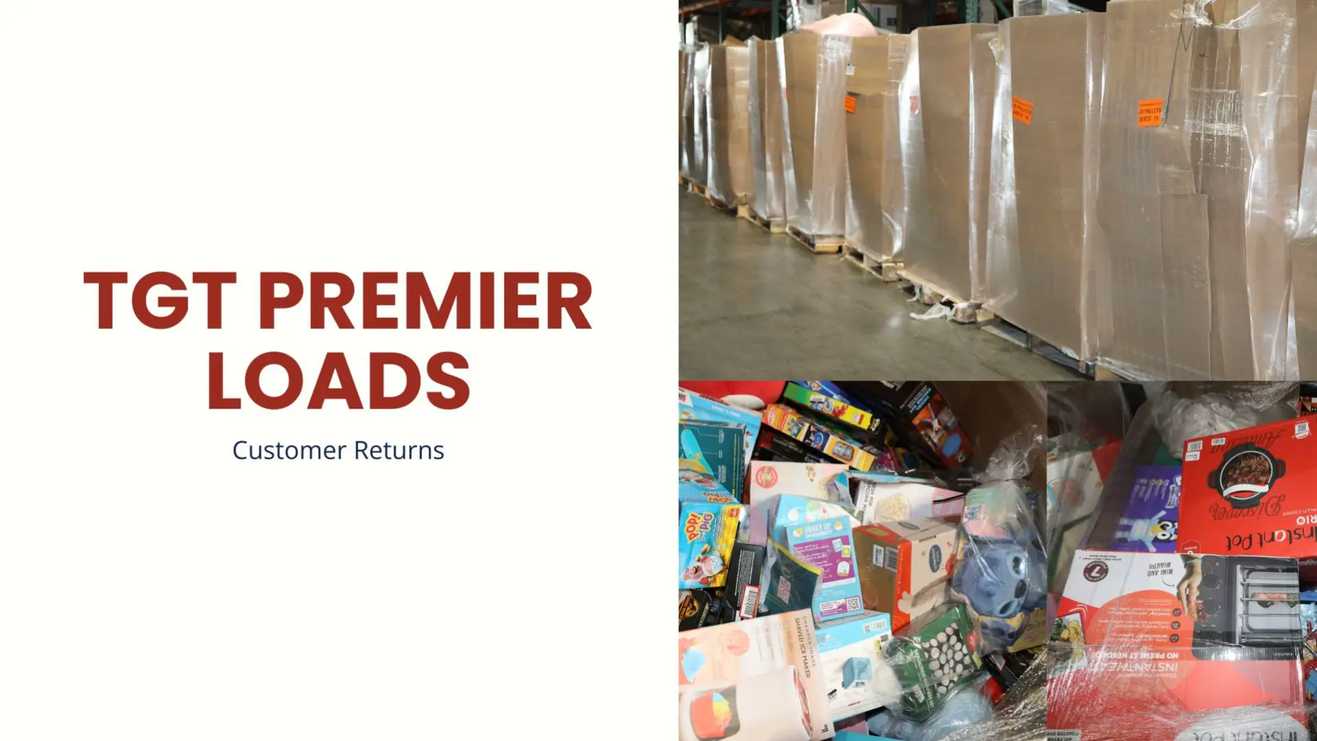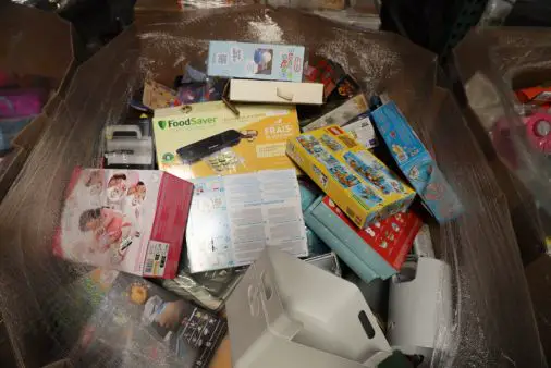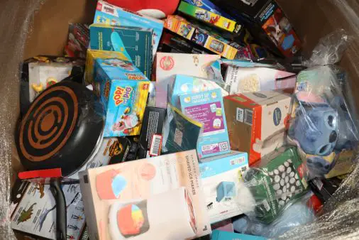 Loads typically include items such as: Accessories, Action Figures, Audio/Video Accessories, Baby Items, Bakeware, Bath & Bed, Board Games, Coffee Makers, Collectibles, Construction, Cookware, Butlery, Dinnerware, Drinkware, Educational Toys, Electronics, Food Storage, Headphones, Kitchen Tools & Gadgets, Licensed Merchandise, Microwaves, Music Systems, Novelty, Plush, RC Cars, Seasonal, Shelving, Shower, Small Appliances, Sporting Goods, Toasters, Vacuums, Video Games/Accessories and more…